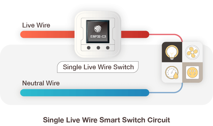 多くのスマートスイッチは「単線 ( ライン線 ) のみ」の構成であり、室内のスイッチ配線も通常は火線 1 本のみとなっています。そのため、従来のスイッチではスマート化へのアップグレードが困難でした。Espressif の単線スマートスイッチソリューションは、配線を変更せずに設置できるため、ユーザーの導入コストを大幅に削減します。さらに、ESP32-C シリーズチップは Wi-Fi および Bluetooth 5 (LE) をサポートしており、専用ゲートウェイの追加も不要なため、システム全体の導入コストと運用の複雑さを軽減し、より手軽にスマートホーム環境を構築できます。