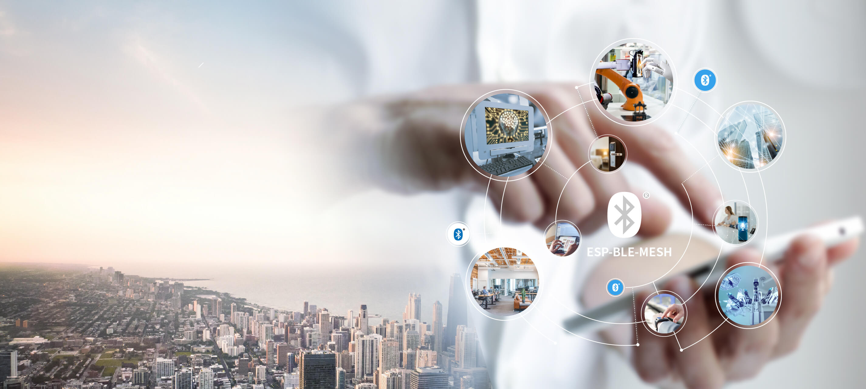 基于 ESP-BLE-MESH 可搭建安全、稳定、可靠的智能照明网络,是远程照明控制、场景感知、办公自动化等用例的优秀解决方案。